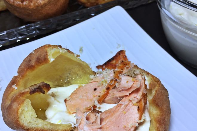 Yorkshirepudding mit Meerrettichfrischkäse und Lachs