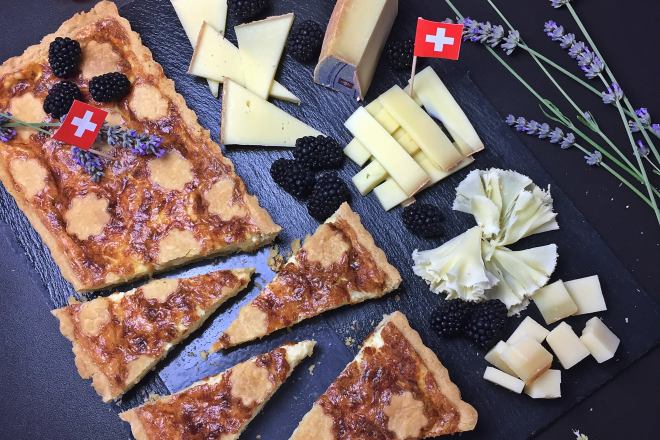 Der letzte Tag für das Blogevent “ Chäsplättli“ bei Zorra im Kochtopf ist angebrochen und ich habe noch ein leckeres Chäsplättli für euch. Dafür habe ich eine Schweizer Käsewähe gebacken, die 3 der Käsesorten enthält, die ich von  Schweizer Käse zugesendet bekommen habe. Ich bin immer noch ganz Hin und Weg von diesem grossen Käsepaket. Ich wohne ja im Dreiländer-Eck, da sind die Schweiz und Frankreich ganz nah. Ich muss gestehen, dass ich bisher eher nach Frankreich gefahren bin, um mir dort Käse zu kaufen. Nun kam ich in den wundervollen Genuss, diese leckeren Schweizer Käsesorten zu probieren und damit ein oder mehrere kreative Chäsplättli anzurichten, wobei der Käse die Hauptrolle spielen sollte. Und das tut er definitiv, denn mein Mann, unsere Gäste und ich sind begeistert und freuen uns jeden Tag auf diesen wundervollen Genuss.