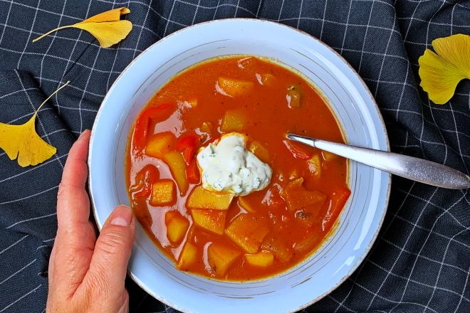 Paprikagulasch mit Gewürzbutter und Petersilienschmand ( nach Alexander Herrmann )