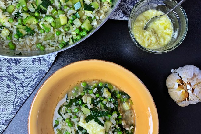 Grüne Minestrone mit Reis und Knoblauchpesto…italienisch lecker zu jeder Jahreszeit