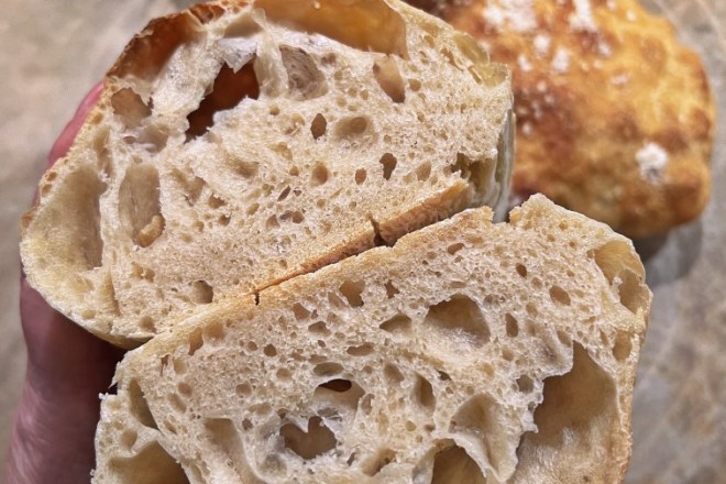 Ich teste gerade einen No-Knead-Teig mit Übernachtgare für Brötchen, Ciabatta und Focaccia. Ein Teig für Alles, ohne viel Arbeit und Equipment …warum ? Weil ich für ein Wochenende in Italien ein Rezept brauche, welches easy ist, nicht viel Arbeit und Aufwand macht und vor Allem ohne Küchenmaschine, die hab ich nämlich nicht dabei. Ausserdem habe ich das Rezept mit Weizenmehl 550 und Dinkelmehl 630 getestet und für gut befunden.