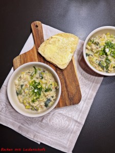 Nach ca. 30-40 Minuten, die Suppe ist recht dick, der Lauch sollte schön weich sein und die Haferflocken sehr weich, würzt ihr die Suppe noch nach eurem Geschmack und serviert diese, getoppt mit der geschnittenen Frühlingszwiebel.