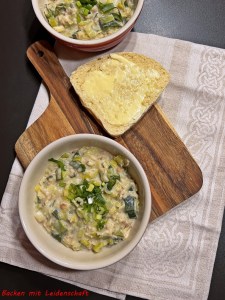 Diese keltische Lauchsuppe passt super in die kalte Jahreszeit, wenn es trüb ist und regnet, denn sie wärmt und macht satt…und natürlich schmeckt sie auch.