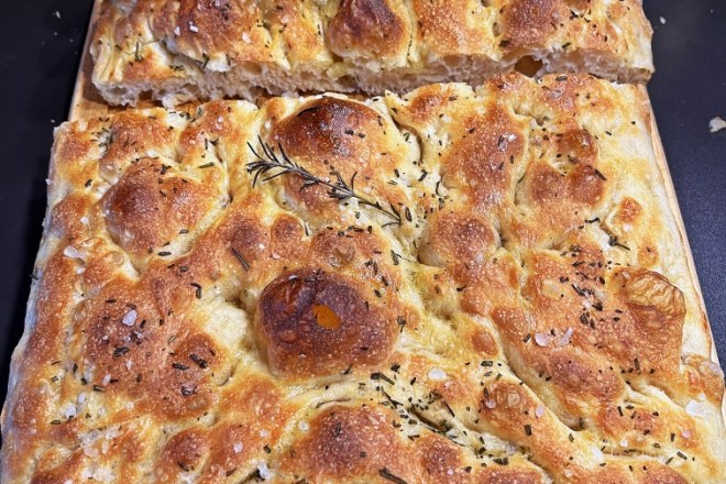 Ich war vom Ergebnis meiner Focaccia so begeistert, das kann ich dir sagen. Das Weizenmehl hatte ich zuvor in der Metro mal mitgenommen, es hat 14 Prozent Eiweissanteil. Nun muss ich es wohl wieder kaufen 😉