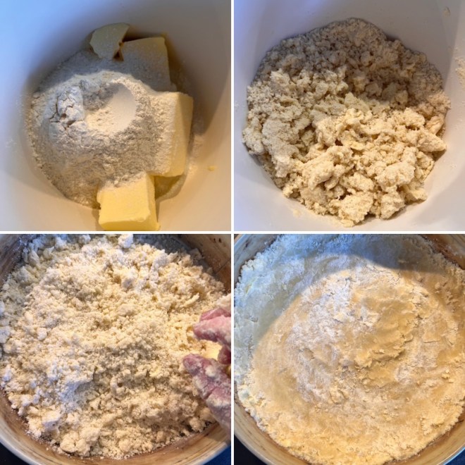 Gib alle Zutaten in eine Schüssel, vermenge und verknete sie zu einem streuseligen Teig mit den Händen. Gib diese in die Springform, drücke sie in der Form fest, bilde einen Rand aus von ca. 2,5 cm. Bemehle am besten die Hände dafür, oder drücke die Streusel fest mit einem glatten Glasboden, auch bemehlt.