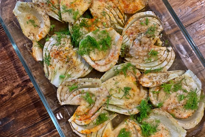 Dieses Rezept habe ich in meinem letzten Urlaub in Italien zubereitet. Es ist ganz einfach, braucht wenige Zutaten und schmeckt köstlich als Beilage. Wir haben den Fenchel einmal zu gegrilltem Fleisch gegessen und einmal zu einem Lamm-Gericht. Was ihr dafür braucht, sind frische Fenchelknollen, die schön knackig sind und noch nicht schrumpelig. In Italien hab ich immer Glück mit frischem Gemüse…auf dem Wochenmarkt bekommt man dieses zu einem kleinen Preis, wir sind immer wieder erstaunt, wieviel Gemüse und Obst man dort bekommt für relativ wenig Geld.