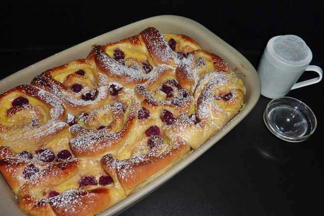 Kuchen ist alle, was für ein Glück für mich. Dann darf ich wieder backen, heute gibts wieder einmal Hefeschnecken mit einer Füllung aus Pudding und Kirschen. Gebacken habe ich sie nicht auf dem Blech, sondern in einer Auflaufform. Sieht gut aus und schmeckt köstlich. Ich könnte mich ja glatt mit reinlegen in die Form. Aber probiert es selbst 🙂 Weiterlesen